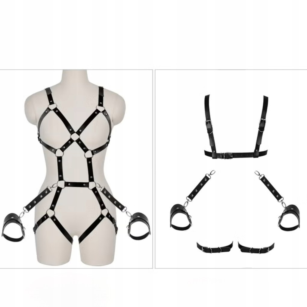 Uprząż BDSM Harness z Kajdankami Fetysz Czarny Uniwersalny REGULOWANY